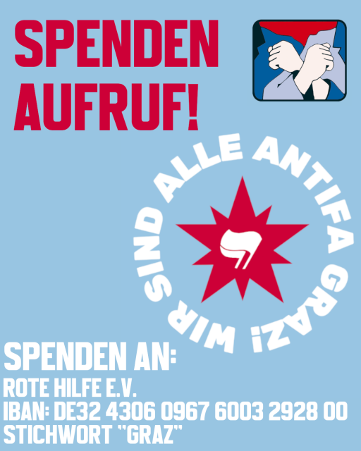 und spendet mit Stichwort „Graz“ auf das Spendenkonto der Roten Hilfe e. V. (siehe Sharepic)